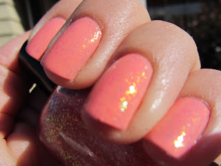 So here are my salmon nails. I really like the way they turned out - mildly bright, spring color, and iridescent.
