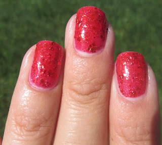 The Engineer is a really gorgeous red polish with small and medium sized hexs. There is also a fine red glitter and light sprinkling of holo micro-glitter. TE went on easily, not streaky, no bare spots, plenty of glitter came out with each brush dip. I used 2 coats for full coverage. What I noticed, that I was so thankful for, was that when I went to clean up any 'coloring out of the lines' the removal was so easy. Unlike most reds I didn't feel like I had red stainage around my cuticles, nor did I have to go over the same spots multiple times to remove any unwanted polish marks. TE came of quickly and easily leaving my nails, cuticles and nail beds looking great. I finished it off with a coat of Gelous and a topcoat.