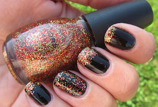 I used Sinful Colors Black On Black with Pumpkin Spice accents. I was really impressed with Black on Black, it was a one coater and extremely glossy. Why haven't I bought this before? Doh!