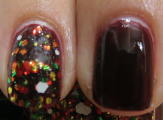 So what are your thoughts on this combo? My husband said it looks like Spanish Christmas (the red being a sangria color and the glitter being very holiday-ish). I can see that but it looked like Fall colors to me.