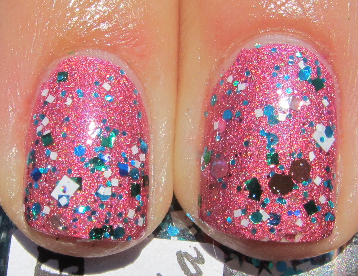 I'm going to start my post with this….bubble gum pink holo and multicolored glitter bomb! Read on if those are a few of your favorite things!