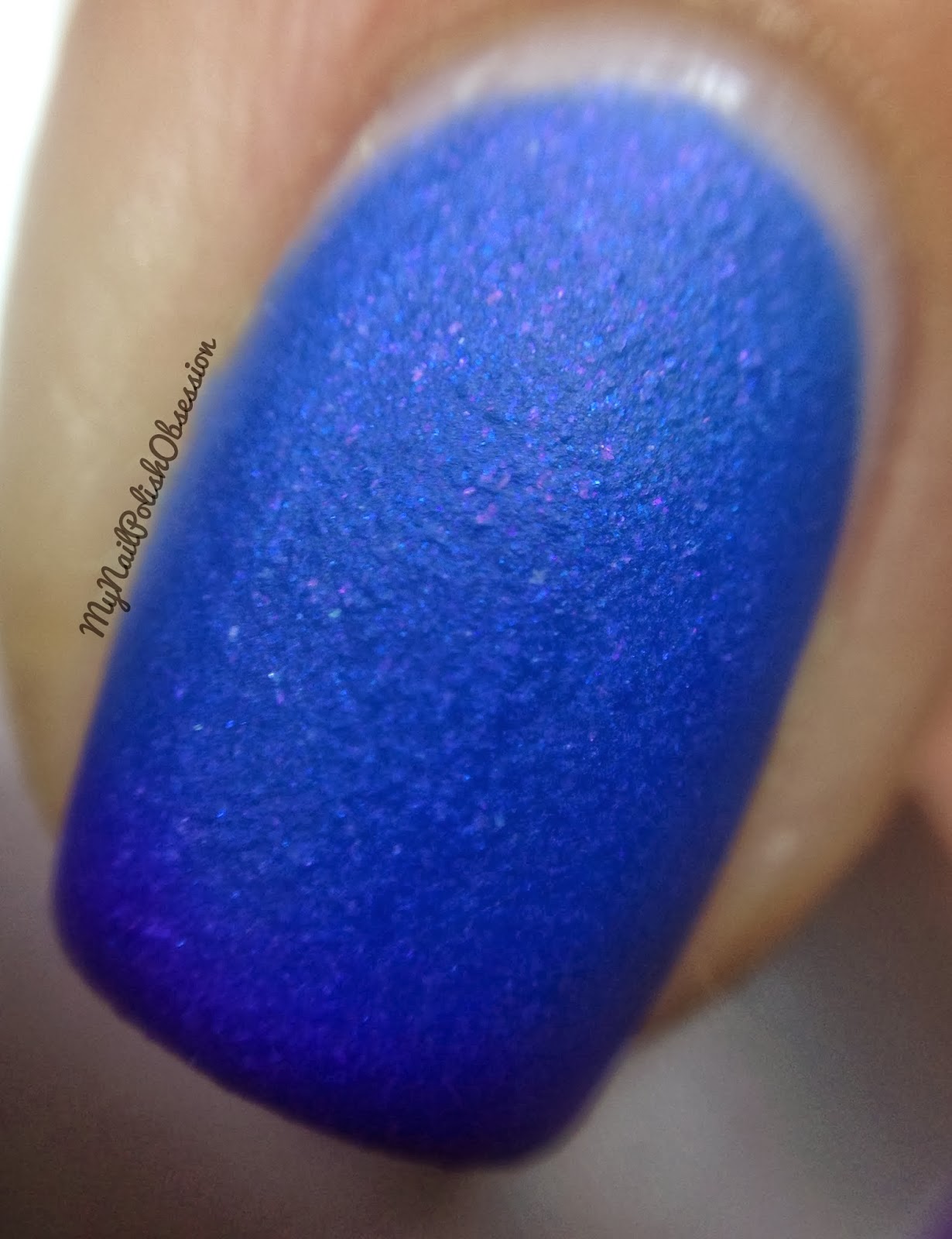 Fascinated turned out to be my favorite of this group. Fascinated changes from "a dark cold purple with blue, violet and fuchsia shimmer to a medium cornflower blue/blurple." Oh my word I adore both the warm and cold colors of Fascinated! The formula was a little more sheer than the others but the application was wonderful. I used 3 coats for full coverage and no topcoat.