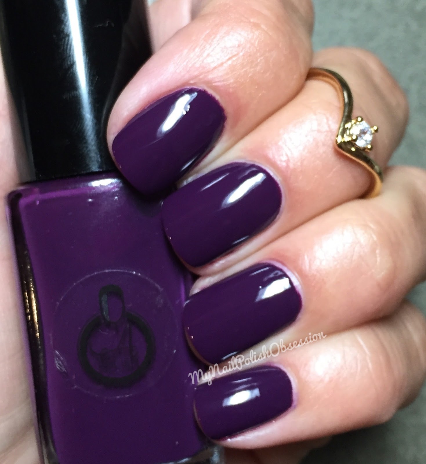 This deep purple plum shade is Barry, No!. It's pretty vampy and gorgeous and you know that gets high marks in my book! The formula and application were both stellar. I used 2 coats and finished with a layer of topcoat.