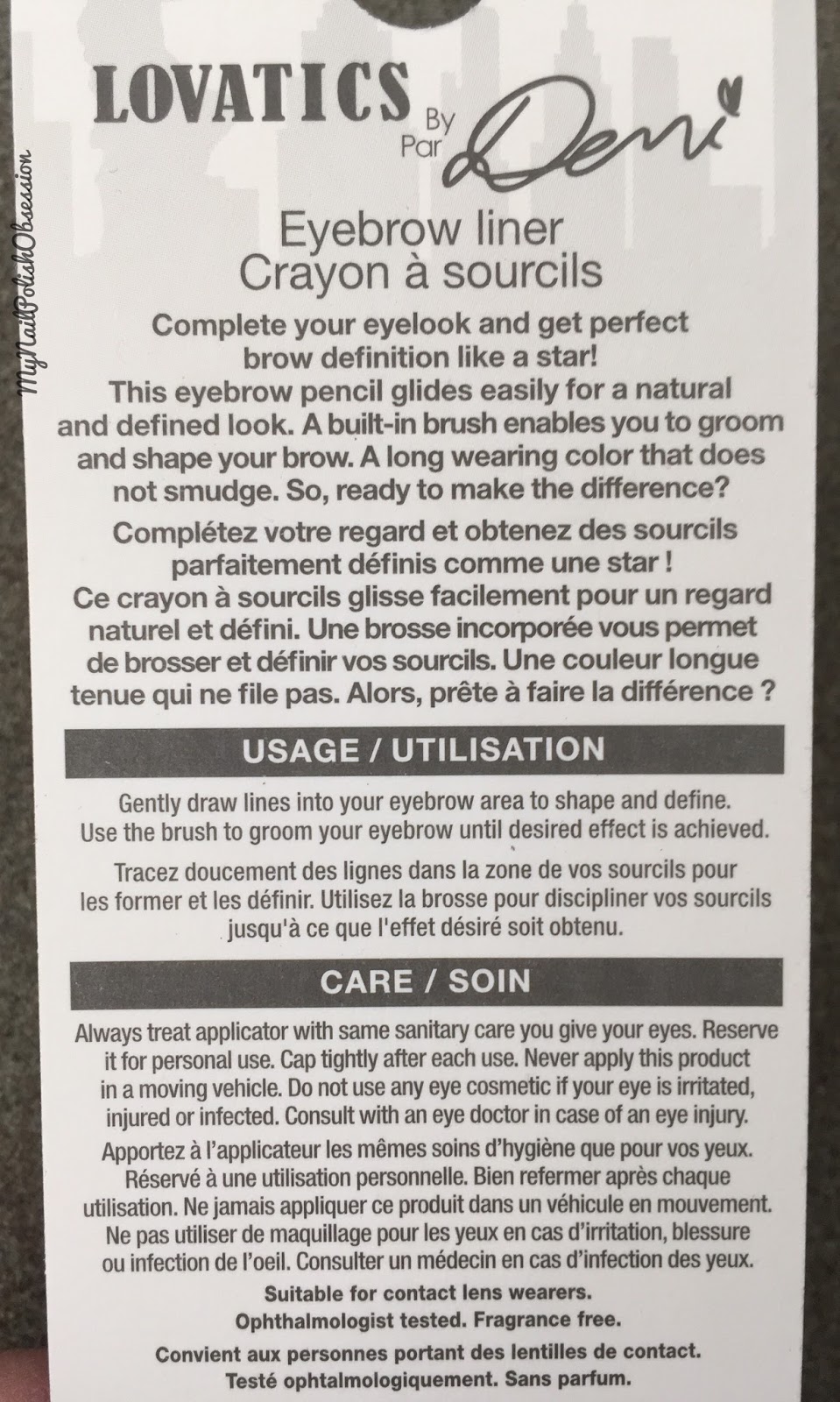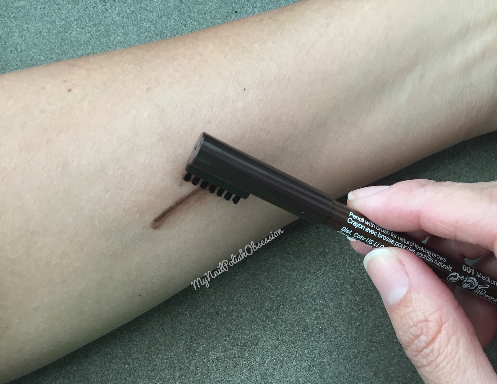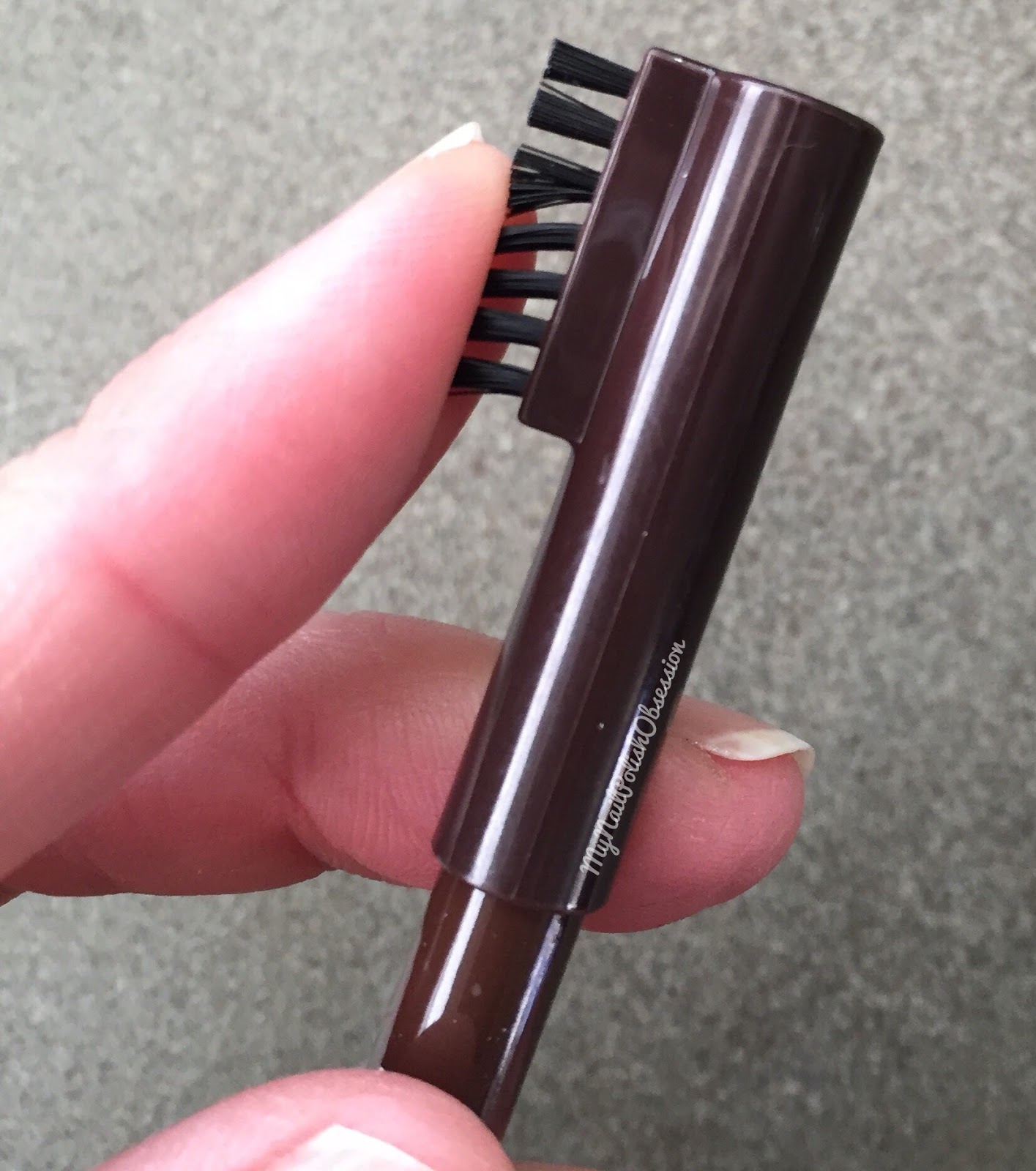 Moving along to the eyebrow pencil. This was 001 Medium Brown. It's pretty basic as far as brow pencils go. A bit harder than an eye or lip liner, but I suppose it need to be to actually blend in with hair. It also comes with this great grooming brush to bend the liner in and smooth your browns into place.
