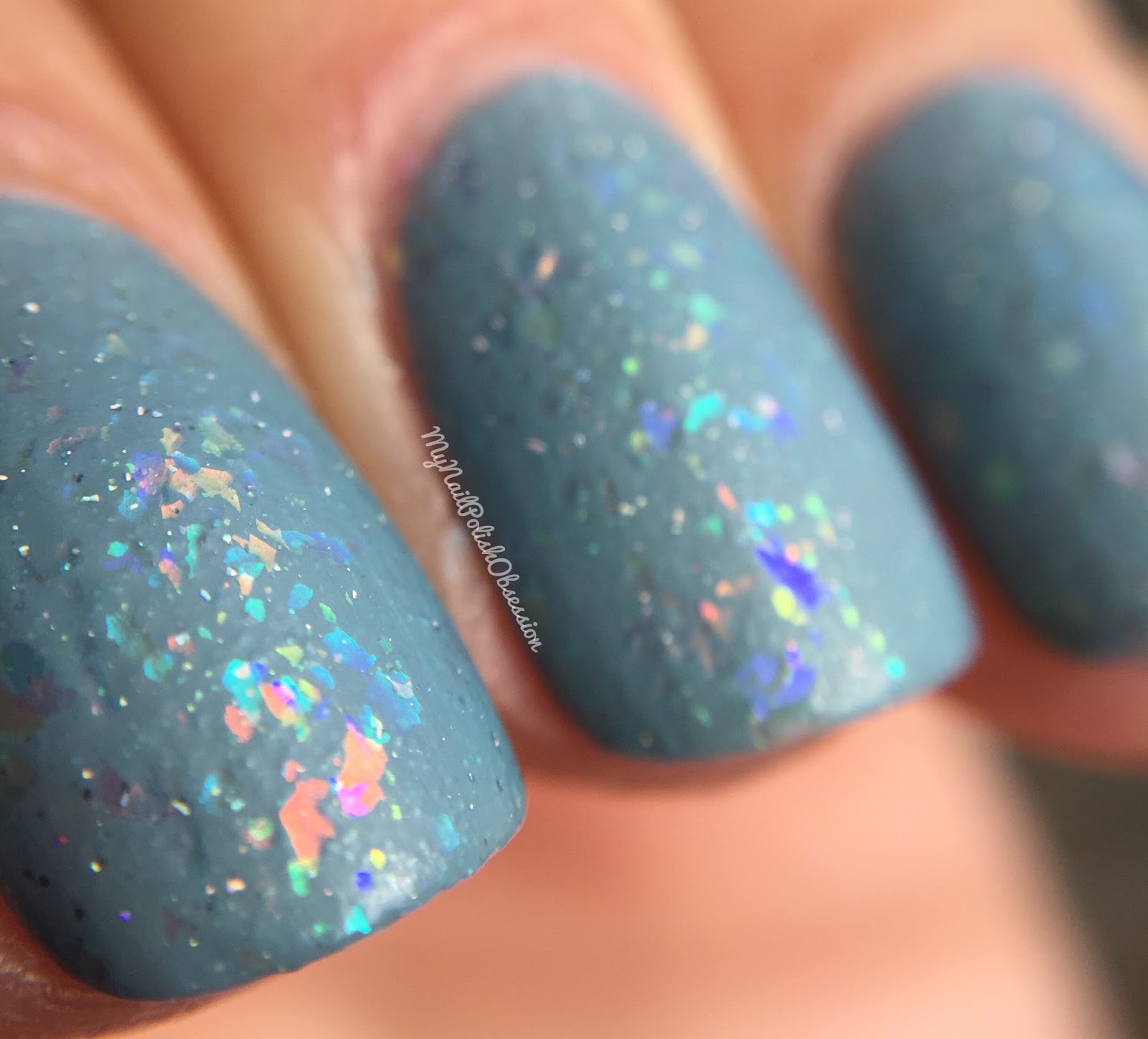 Then I topped it with Darling Diva Polish May the Force Be With You, a rainbow flakie topper. This is a fun and beautiful topper that's full of color! And it's got a great payoff - I only used 1 coat for an ample amount of rainbow flakie goodness. Formula and application were both perfect. I opted for a matte topcoat instead of a glossy one because I felt it would show off the flakies better. Boy was I right! I love how it turned out!
