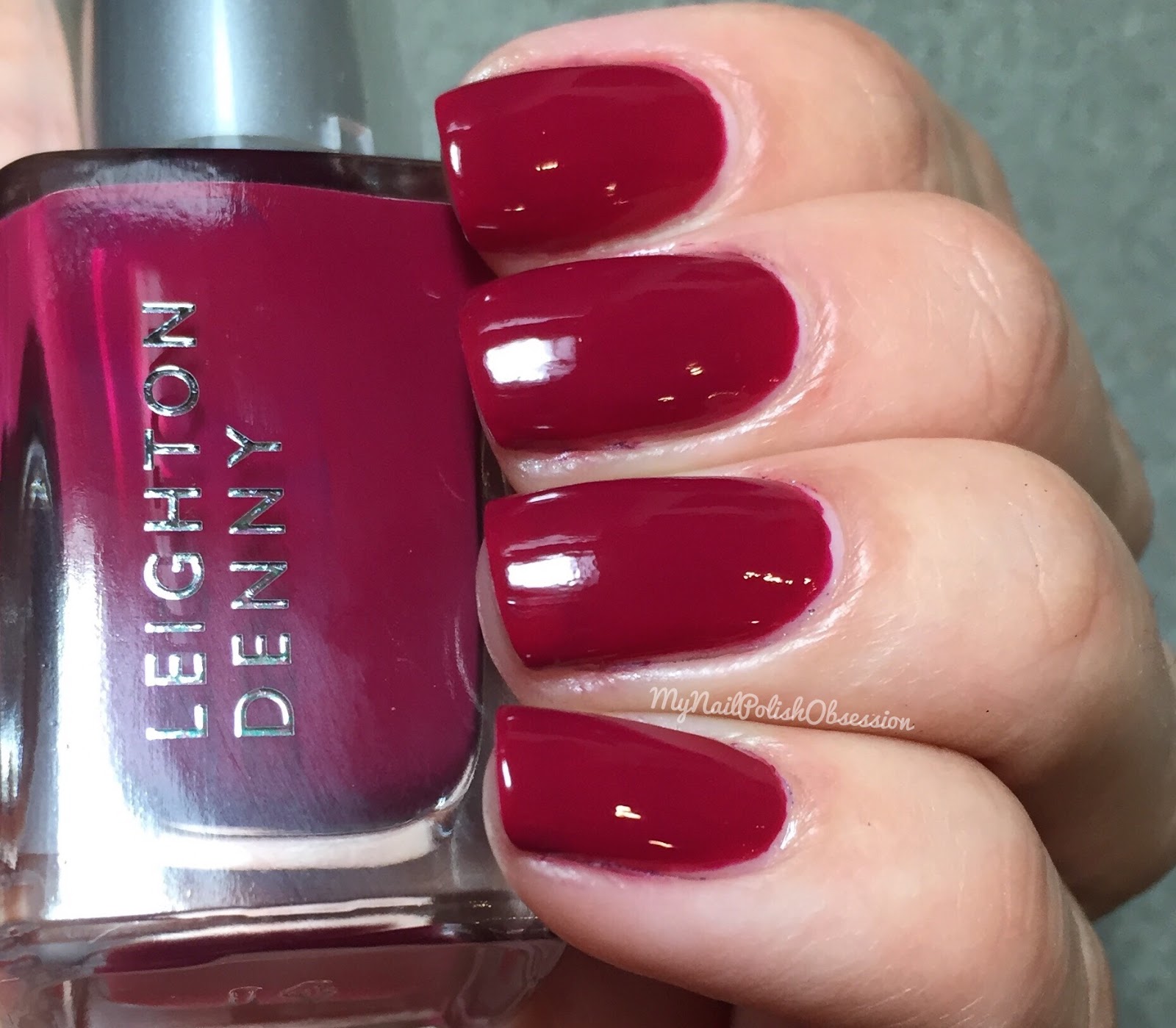 Good afternoon all! I took a "me" day and enjoyed some time to myself this morning. Of course I did have to drop off my car at the shop first, but then it was Starbucks and pedicure and yummy lunch! I think I need to do these pampering days more often because I seriously get so bogged down with the daily routine. Plus happy mom = happy family, right? Right. Of course I am off topic, so let me re-direct. Today I have a gorgeous color from a UK brand that I hadn't heard of before (until CosmoProf of course). But this color is so sexy and romantic I figured it was the perfect time to share it! Leighton Denny is a nail care brand that was founded in 2005. This 3-free, cruelty-free brand is full of glamour and on trend fashion which makes it a big hit with celebrities. Some of the collections I saw on the convention floor were stunning! The only back draw that I see is that USA gals and guys can't get the polish here! Unless I missed a stockist link in the their info pages. So if you find out a way to get Leighton Denny please comment below so we can all enjoy the shopping experience!