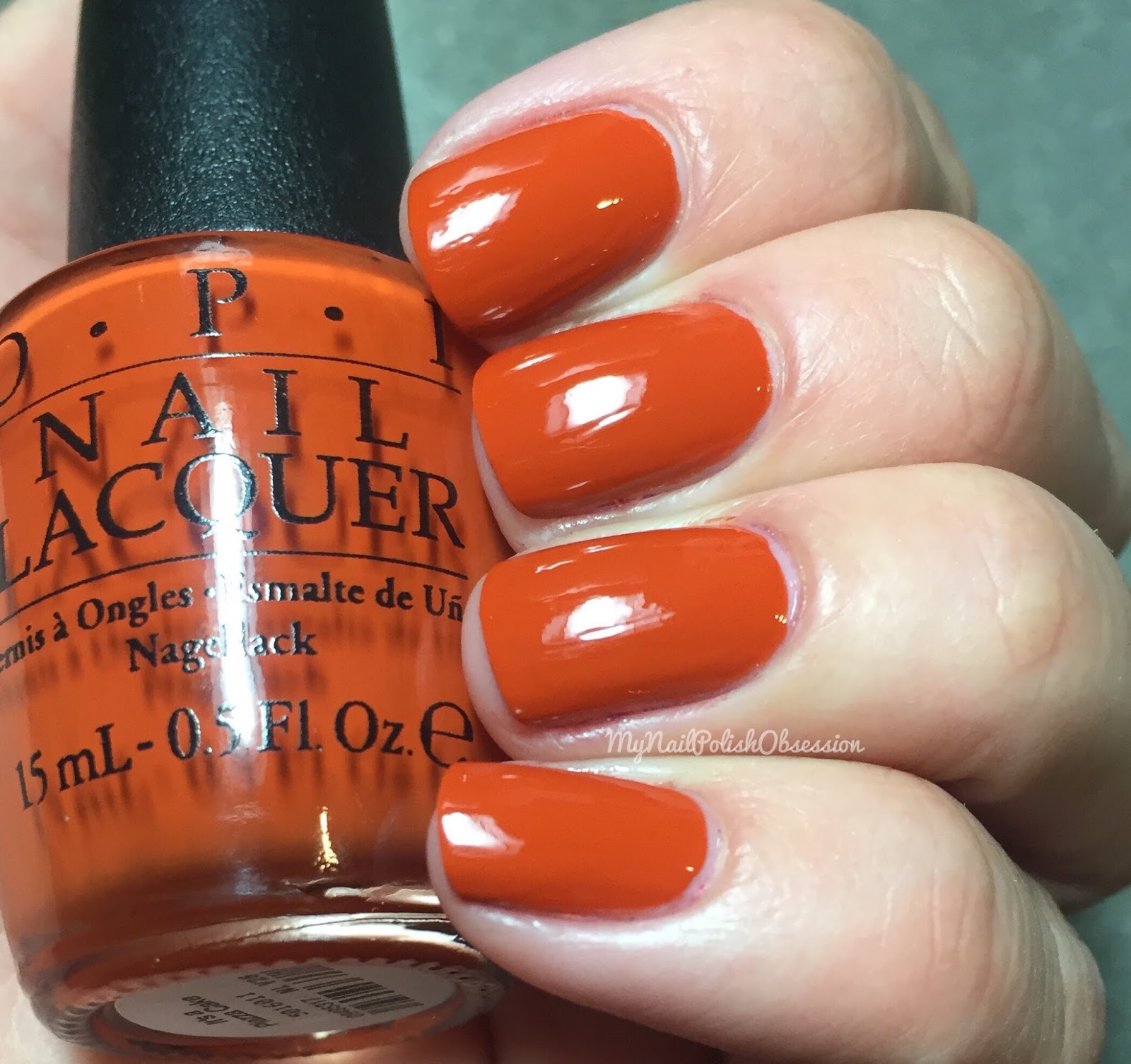It's A Piazza Cake is a slighty-burnt orange creme. Reminiscent of the ever so popular 70s shag carpet. But I love it. I actually have no idea what cake OPI is referring to here as I am more familiar with the Sicily area of Italy. Though they could be referring to San Marco Square but I don't remember anything there being this color of orange. For some reason It's A Piazza Cake really washed me out though and made me look super pale! But the formula and application were both wonderful. 2 coats for full opacity and topcoat.