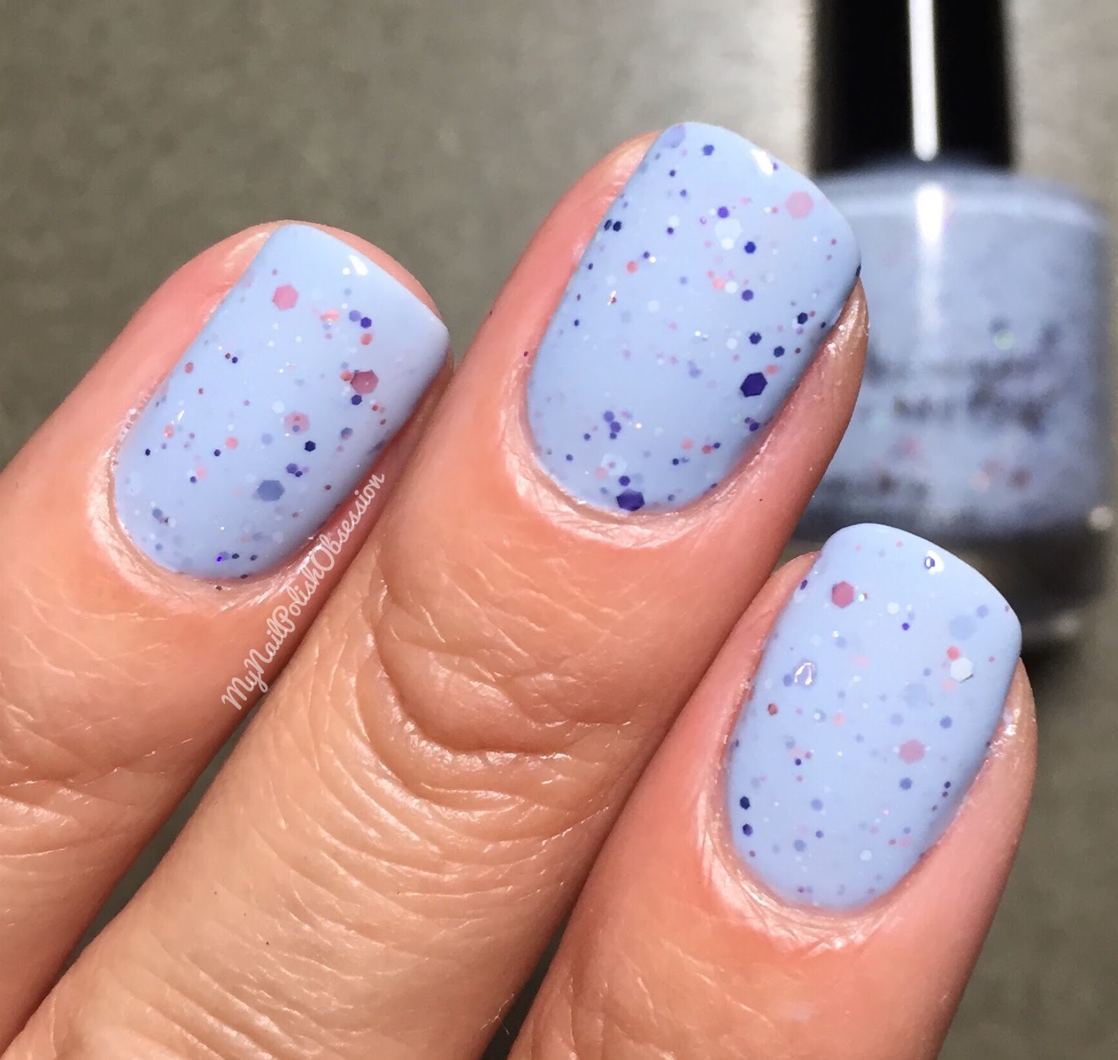 I Wet My Plants (oh goodness, this is a hilarious name), is a pastel periwinkle crelly with pink, sapphire, silver and purple glitters. This one is based on Pantone Spring/Summer 2016 shade Serenity. I love the take on this Pantone color, very unique and original. The formula and application were both fabulous. I used 3 coats for full coverage and finished with topcoat.
