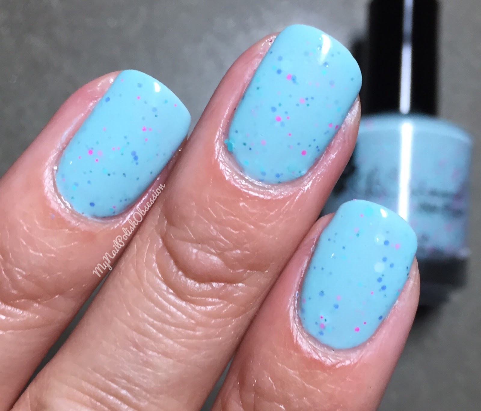 Pools Paradise is a lightened green leaning aqua full of neon pink, periwinkle and aqua glitters. This one is base on Pantone Spring/Summer 2016 shade Limpet Shell. I did think the glitters were a bit "thick" in this one so you definitely want a good topcoat to ensure everything is nice and smooth. Aside from that there are no issues with the formula or application. I used 3 coats and topped it with topcoat.