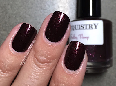 Good morning again beauties! I hope your Tuesday is wonderful. My post is wonderful, but I worry you'll be mad at me. I've been on a bit of a binge, but I have more exclusive polishes to share with you today. I promise I don't have any more of these post to share for a while. So today's featured brand is Lacquistry! I have 2 sultry shades that were group exclusives to the Nail Polish Vamps group on Facebook. You can still get these but you do have to join the Facebook group. Of course you can get tons of other sparkly and glitters goodies in the Lacquistry shop, and lots on sale! Make sure you stop and browse around.