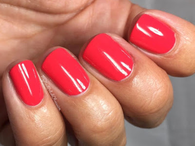 Beauty Essential is a vibrant coral creme. The formula on this was stellar! It covered perfectly in 2 coats and no topcoat needed. I like how the Breathables felt on my nails, light and airy, not weighted down at all. I do have to mention that the smell of the Breathables isn't what I'm used to. It's not offensive, just different that regular nail polish.