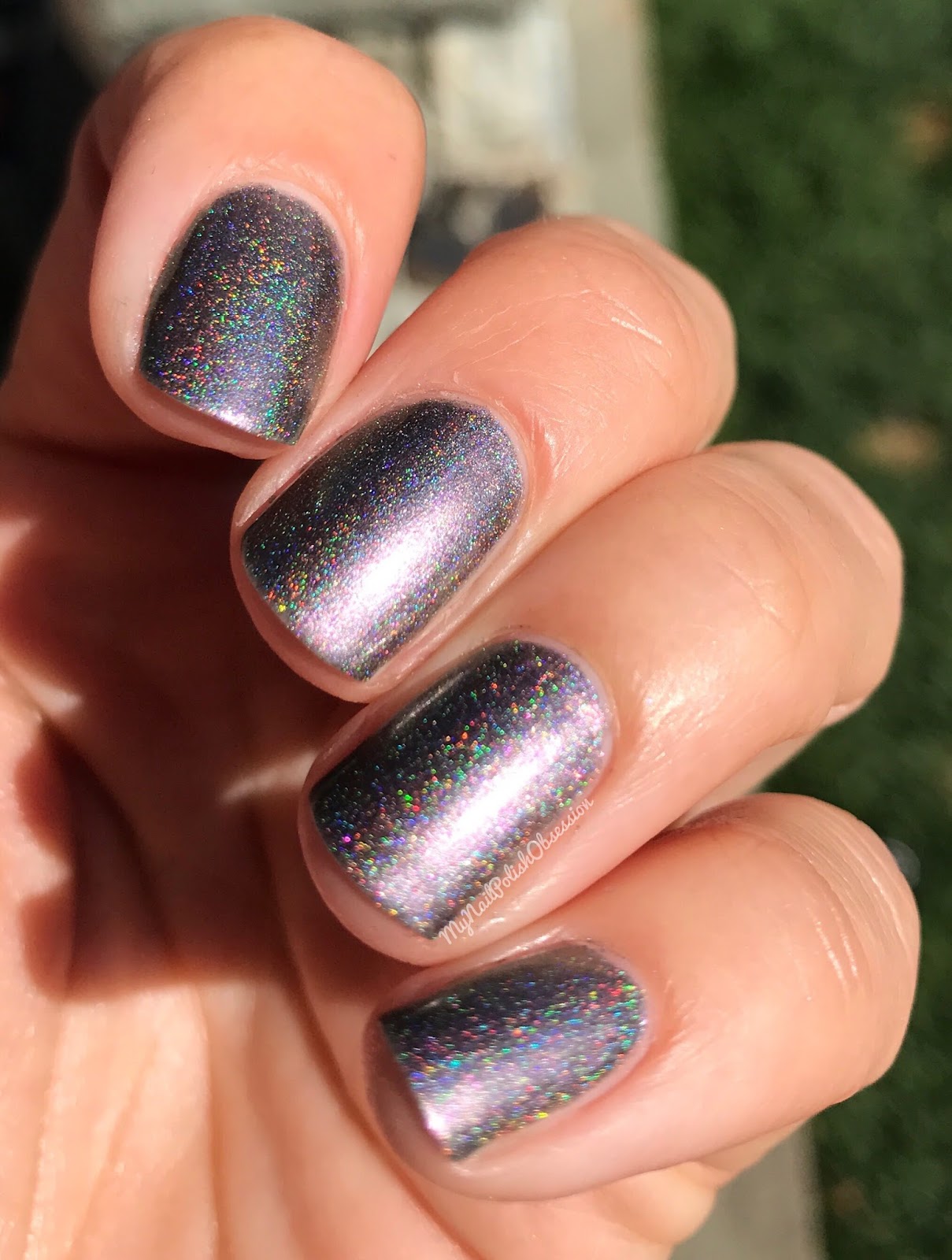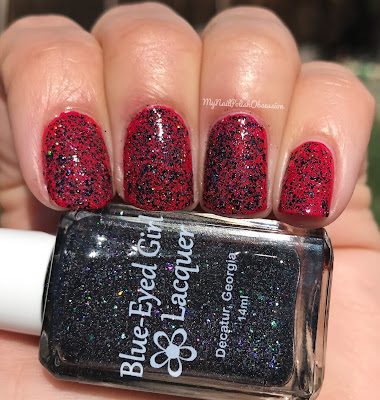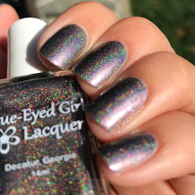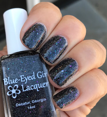 I Could See Them Too is a black micro glitter with holo sparkles. You can use this polish on it's own or as a topper. I have it done both ways to show you. Formula and application were both good. Removal was a bit of a pain and I ended up with glitter everywhere. I used 3 coats here, on it's own, to show you what it looks likes solo. Topcoat to finish.
