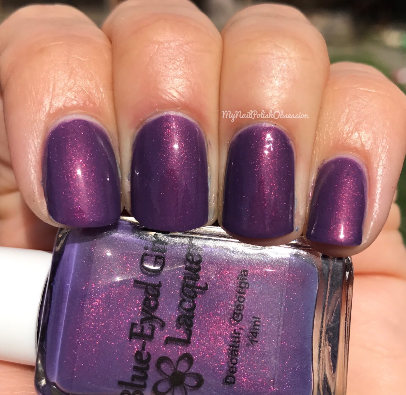 In the Dawning Light is my favorite of the bunch. It's a smoky purple with red shimmer. Totally stunning. I totally plan to rock this shade all year round, especially this Summer and Fall. It'll be a fabulous date night color. Formula and application were great. Opaque and creamy, great coverage. I used 3 coats to reach full shimmer potential and topped it off with glossy topcoat.