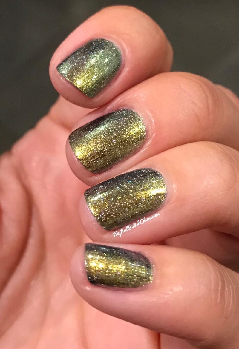 Chicago Fair-Ever is a purple/blue/fuchsia/gold multi chrome and gold holo micro glitters. Love the dark shades this one boasts! I definitely saw plenty of shift in this one. Formula and application were both great. I used 3 coats for maximum depth and finished up with topcoat. I actually wore this one for about a week and received loads of compliments. It wore like steel too!