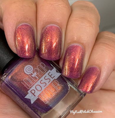 Dulcet is a gorgeous red base with with red/green/gold shifty aurora shimmer. This color has all the Fall feels for me. Such a pretty shimmer and base color. It was just a bit on the sheer side but I got nice coverage with 3 coats and topcoat.